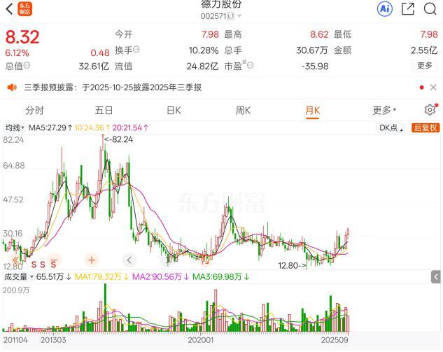截至9月30日收盘,德力股份市值为32.61亿元。