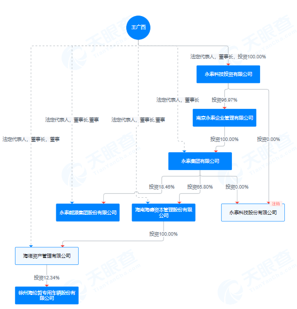 天眼查显示,王广西是永泰能源、海德股份的实际控制人,并且是海伦哲第一大股东海德资产管理有限公司的实际控制人。