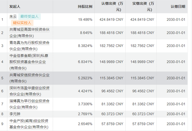 从股权结构来看,数盾科技的股东背景较为复杂,目前共有50位股东。公司的实际控制人为朱云,其直接持股比例为19.49%。此外,股东名单中还包括中金资本、真为基金、深圳高新投等一系列知名投资机构。