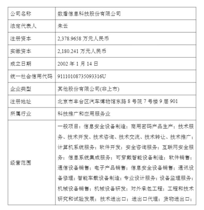 数盾科技官网显示,该公司成立于2002年,专注于国产密码技术研究、密码信息安全产品研发和信息安全整体解决方案服务,目前已形成密码安全产品、信息安全产品、等保服务、密评服务四大体系。