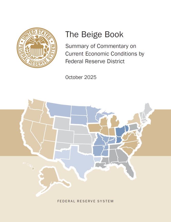 关于总体经济活动,《褐皮书》表示,三个辖区报告活动略有温和增长,五个辖区报告无变化,四个辖区指出略有疲软。尽管在9月底联邦税收抵免到期之前,一些辖区的电动汽车强劲需求提振了汽车销售,但总体消费者支出,尤其是零售商品支出,在最近几周略有下降。报告期内,国际旅客对休闲和酒店服务的需求进一步下降,而国内消费者的需求基本未变。尽管如此,据报道,高收入人群在豪华旅行和住宿方面的支出依然强劲。多份报告强调,面对物价上涨和经济不确定性持续高企,中低收入家庭继续寻求折扣和促销活动。制造业活动因辖区而异,大多数报告指出,由于关税提高和总需求减弱,行业面临挑战性环境。报告辖区的农业、能源和运输业活动普遍下降。金融服务业以及其他利率敏感型行业,如住宅和商业房地产,情况好坏参半;一些报告指出,由于利率降低,近几周商业贷款有所改善,而其他报告则继续强调活动低迷。未来经济增长前景因辖区和行业而异。据报道,少数辖区的市场情绪有所改善,一些联系人预计未来6至12个月需求将有所上升。然而,许多其他联系人仍预计持续的高不确定性将抑制经济活动。一份辖区报告强调了政府长期停摆对经济增长的下行风险。