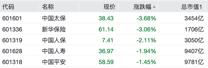 大金融板块集体下挫,保险、银行、券商股纷纷下跌。