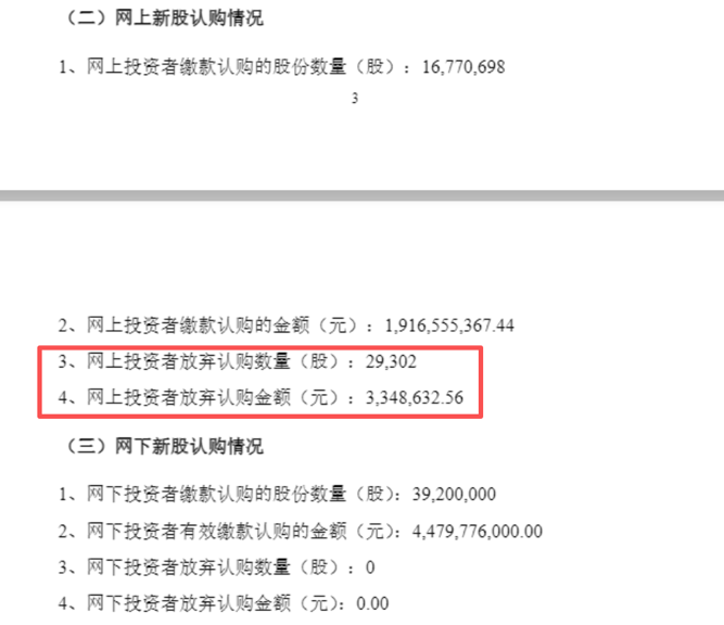 市场人士分析,网上投资者放弃认购,可能是因为忘记缴纳认购金额或是账户自动认购金额不足,按目前新股表现和摩尔线程的热度,预计将错失摩尔线程上市后的较大收益。
