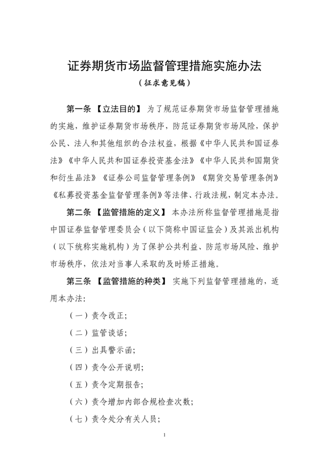 【导读】证监会就《证券期货市场监督管理措施实施办法(征求意见稿)》公开征求意见