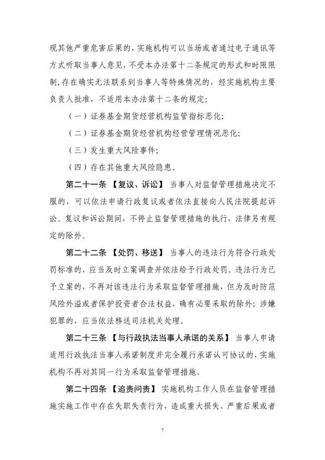 据介绍,“监督管理措施”,简称“监管措施”,是金融监管的重要手段。此前,证监会于2008年制定了《证券期货市场监督管理措施实施办法(试行)》,对监管措施的调整范围、适用原则、种类、实施程序等作了规定。