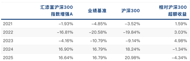2025年,上涨行情中选股的价值再次凸显,主动基金显著跑赢指数。而汇添富沪深300基本面增强作为有主动投研赋能的沪深300指增基金,也是相较基准,出现了显著超额。