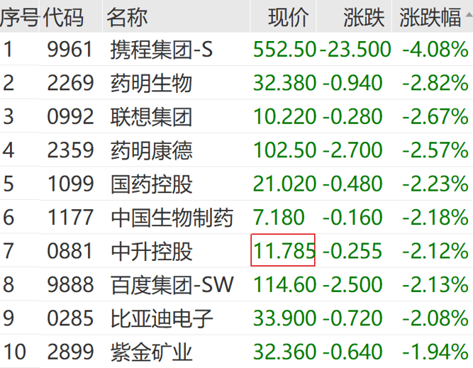 港股三大指数早间低开,上午同步震荡走低。携程集团跌超4%,领跌恒指概念股。