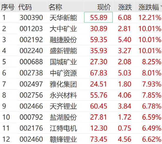 11月17日上午,锂矿板块集体走高,大中矿业、融捷股份、盛新锂能等多股涨停,赣锋锂业、盐湖股份涨超6%