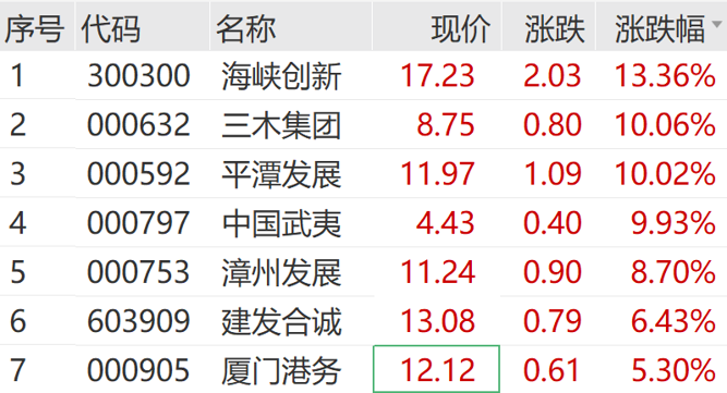 两岸融合概念股继续活跃,三木集团、平潭发展、中国武夷等纷纷涨停,海峡创新涨超10%。
