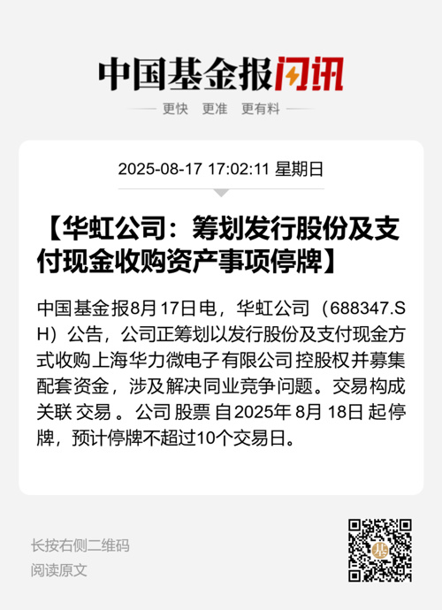 【导读】华虹公司8月17日公告,正筹划收购华力微控股权,明日起停牌