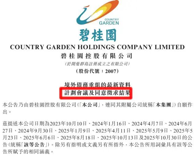 【导读】碧桂园境外债务重组方案,获多数债权人同意