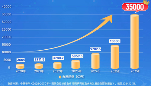 政策暖风吹拂下,市场规模增长曲线陡峭。根据工信部赛迪研究院等数据,截至2023年末,中国低空经济规模达5059.5亿元,伴随着低空飞行活动增加和基础设施投资见效,未来几年行业有望保持快速增长,预计2026年规模突破万亿元,2035年规模有望突破3.5万亿元。