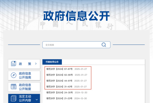 1月27日,央行官网公布了2025年首批四张罚单,四家银行因多项违法行为,连同逾50名相关责任人被罚,合计罚没金额超1亿元。