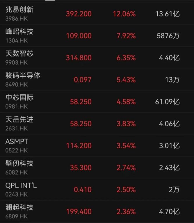 港股市场上涨,券商和半导体股扛起领涨“大旗”。
