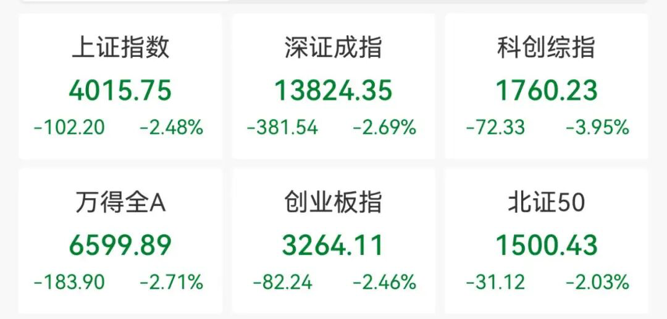 2月2日,A股三大指数低开低走,截至收盘,沪指跌2.48%,报收4015.75点;深证成指跌2.69%,创业板指跌2.46%,全市场成交额为2.60万亿元,较上一个交易日缩量2584亿元。
