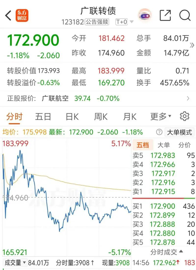 数据显示,广联转债3月2日收盘价为172.9元,以此价格计算,若不及时交易或转股,投资者或将亏损41.61%。