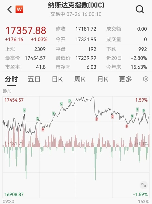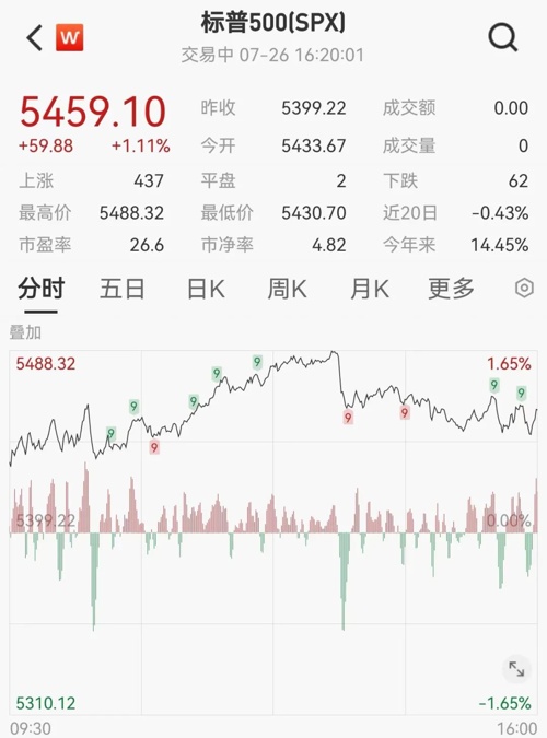 美国三大股指全线收涨