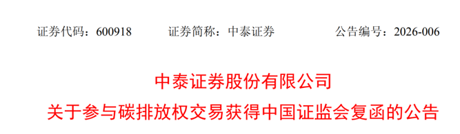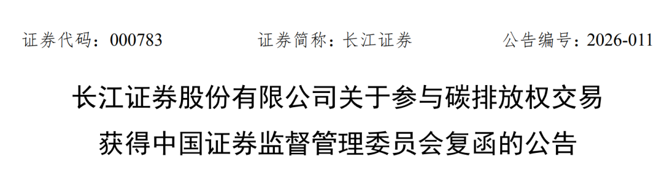 3月5日,中泰证券、长江证券、国金证券发布公告称,收到证监会复函,公司自营业务可以在境内合法交易场所参与碳排放权交易。