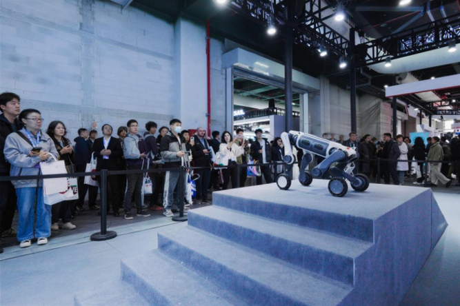 在动态演示区,山猫M20凭借先进的轮腿融合运动算法,面对陡峭台阶可以从容调整姿态,从而稳步攀爬、轻松翻越,直观展现了云深处科技在复杂地形适应与运动控制领域的技术积淀。