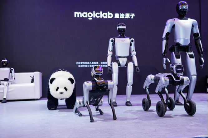 在魔法原子展台,两款面向工业场景的机器人产品——人形机器人MagicBot Gen1与四足机器人MagicDog Y1 同步亮相,集中展示该公司在工业场景中的产品布局与技术实力。