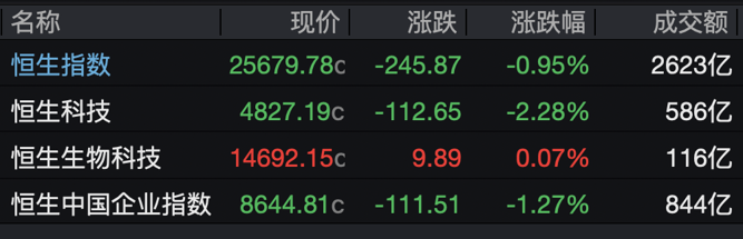 【导语】恒生科技指数大跌2.28%,科技、AI、锂电龙头股集体下跌,药明康德大涨