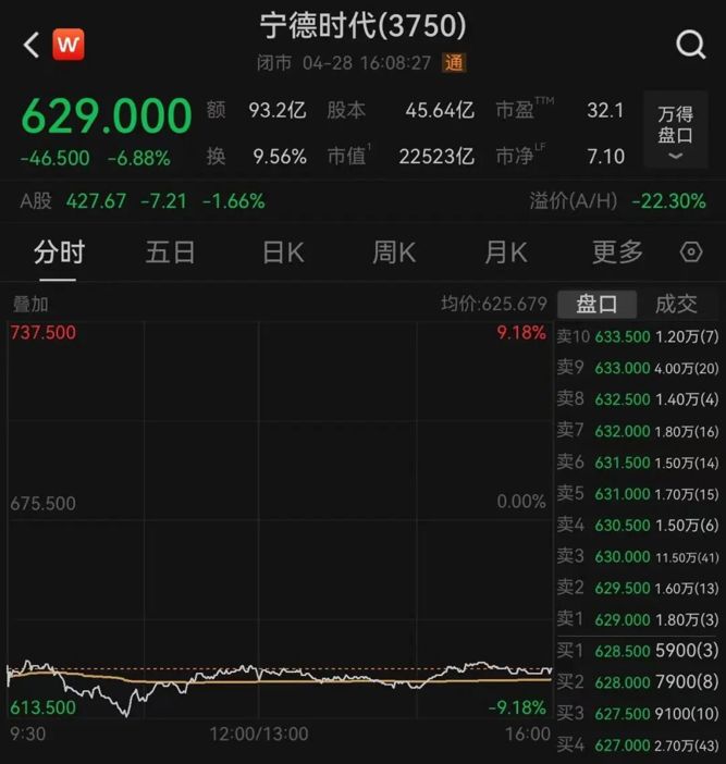 拟配售新H股筹资逾390亿港元,锂电龙头宁德时代大跌近7%。