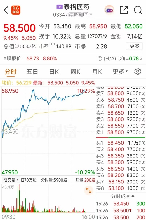 或受消息影响,泰格医药今日股价大涨,A股涨幅为8.8%,H股涨幅更达到9.45%。截至7月29日收盘,泰格医药A股市值为591.8亿元。