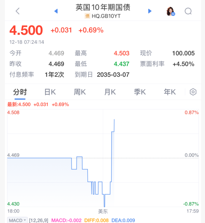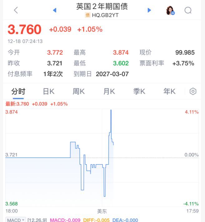 受上述“谨慎指引”影响,英镑和10年期英国国债收益率在决议后抹去此前跌幅。对利率最敏感的两年期英债收益率上升至3.76%,10年期收益率上升至4.5%。英镑小幅走强。