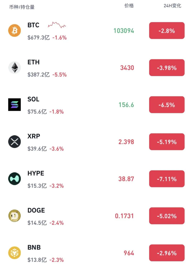 此外,索拉纳币、狗狗币、XRP等均跌超5%。