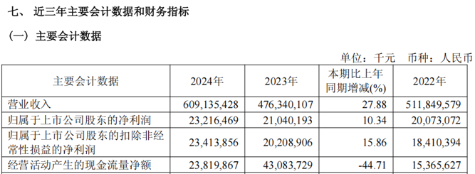 2024年全年,工业富联的营业收入、归母净利润、扣非后净利润分别为6091.35亿元、232.16亿元、234.14亿元。