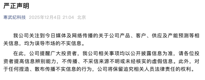 寒武纪发布严正声明