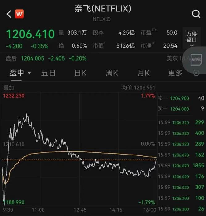 奈飞盘中转跌,截至收盘,下跌0.35%。