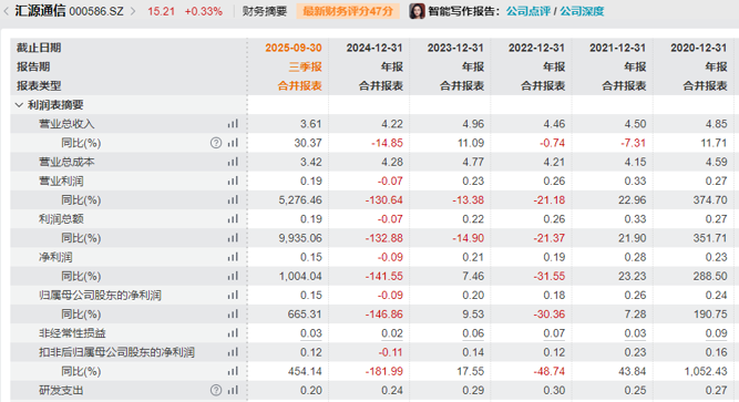 业绩方面,汇源通信前三季度净利润扭亏为盈,但近年来的营收表现并不稳定。10月23日,汇源通信发布三季度业绩,前三季度营收为3.61亿元,同比增长30.37%;归属于上市公司股东的净利润为1476.34万元,同比增长665.31%。