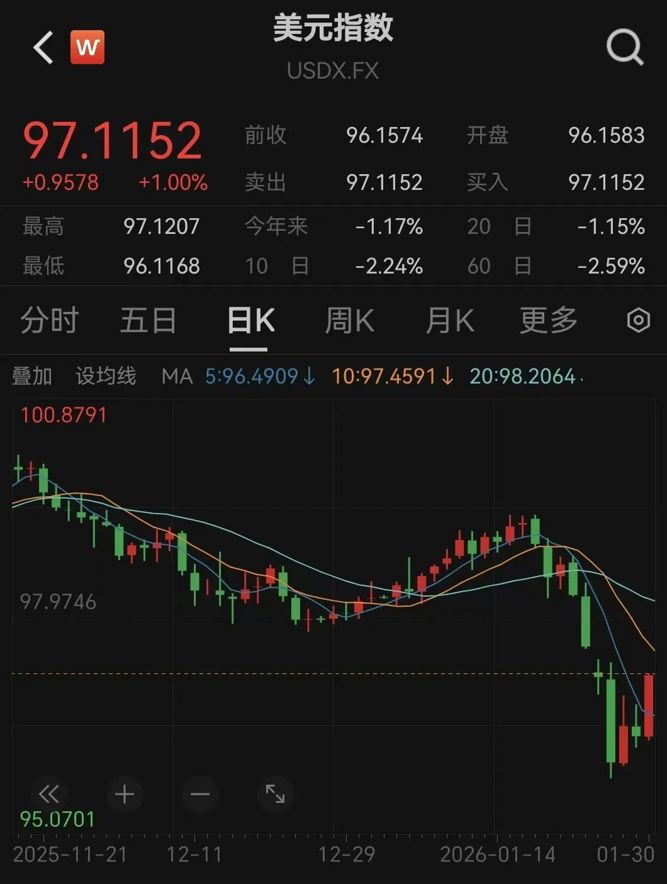 昨夜今晨,恐慌性抛售席卷贵金属市场,美元创2025年7月来最大单日涨幅,美国三大股指全线下跌。