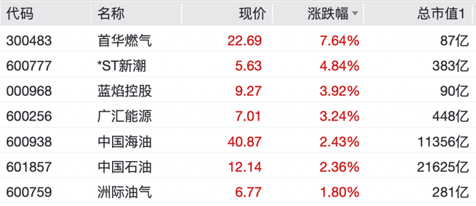 首华燃气涨逾7%,蓝焰控股、广汇能源、洲际油气等纷纷上涨。