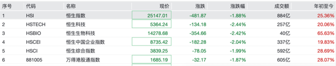 港股方面,恒生主要指数同样下挫,截至发稿,恒生指数跌1.88%,恒生科技跌2.44%,恒生生物科技指数跌2.42%。个股方面,阿里巴巴、小米集团、信达生物、京东健康跌超3%,翰森制药跌超2%。腾讯控股、比亚迪股份、药明康德跌超1%。