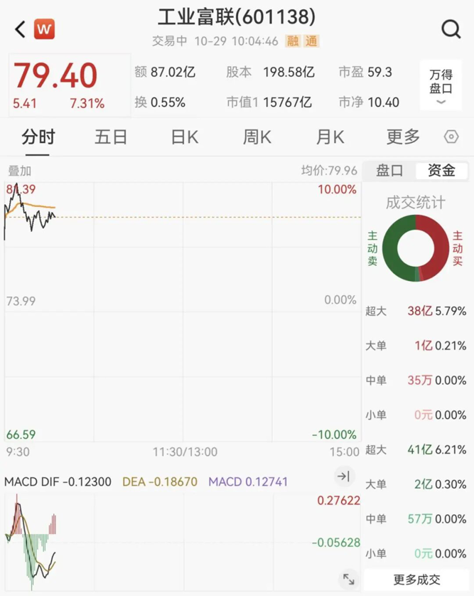 早盘液冷服务器概念股表现活跃,工业富联一度触及涨停,续创历史新高。