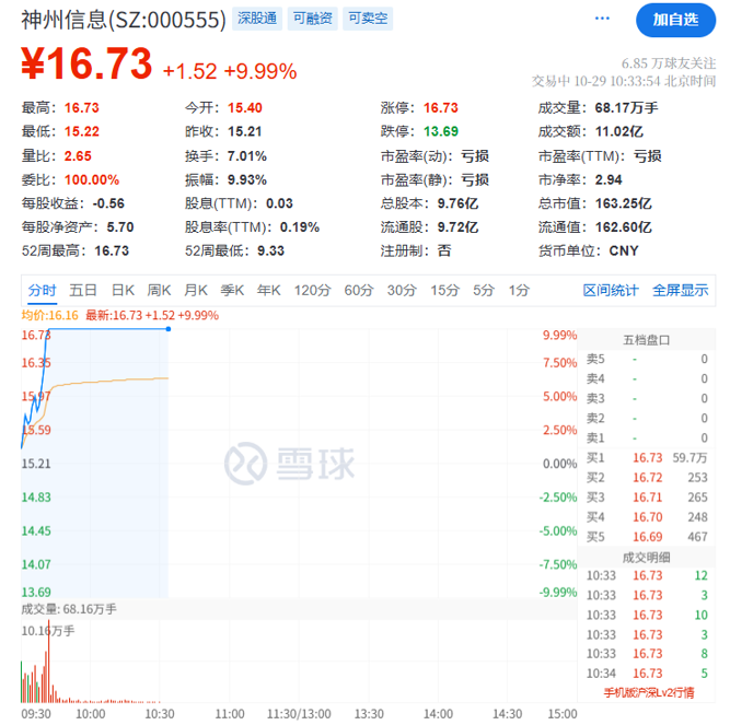此外,科大国创、国盾量子涨幅居前,神州信息直线拉涨停。