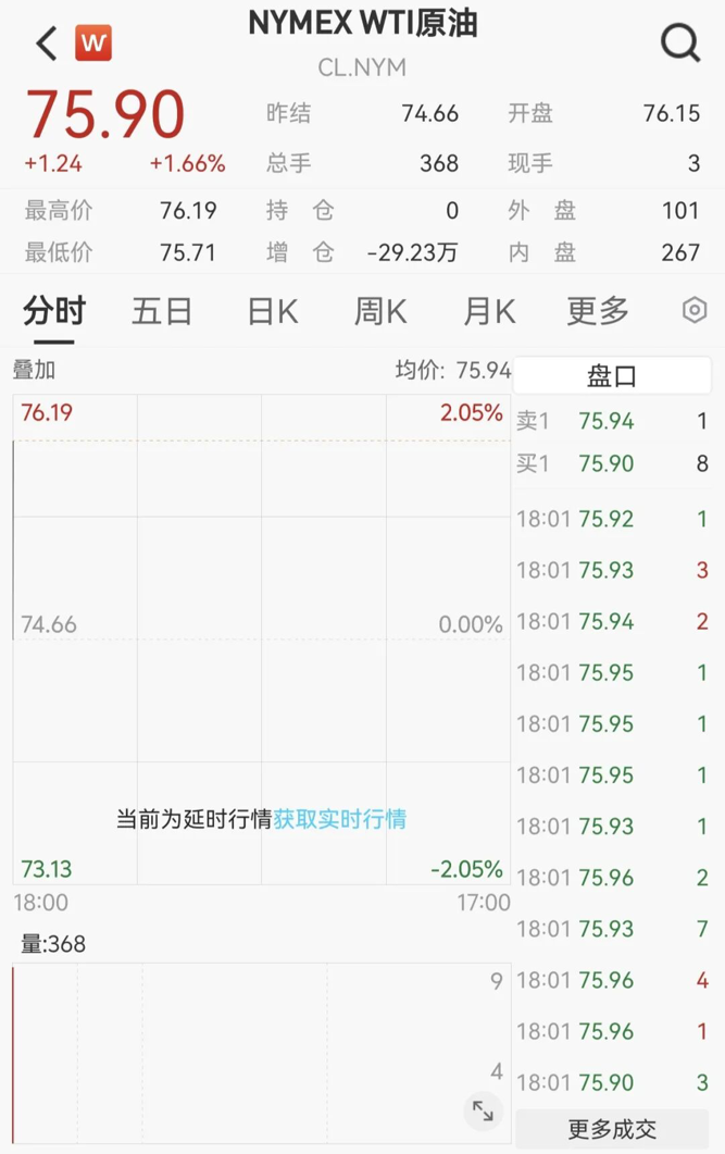美油期货主力合约高开