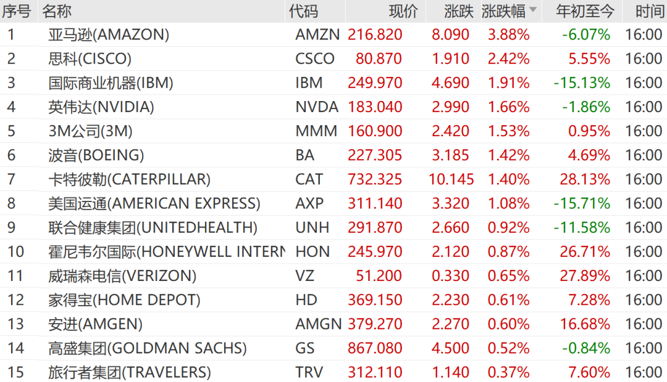 美国三大股指全线收涨