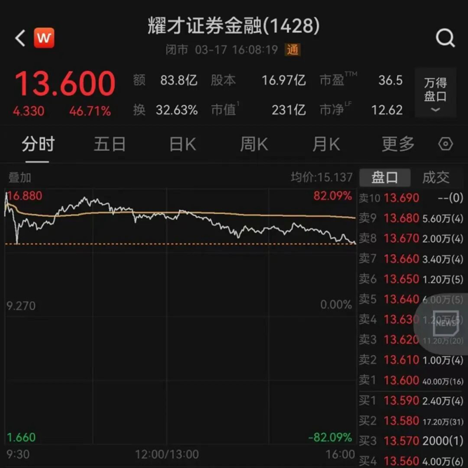 【导读】耀才证券金融盘中“飙涨”82%,中资券商股走高