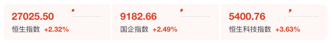 2月23日早盘,港股三大指数高开高走,均涨超2%。截至发稿,恒生指数涨2.32%,恒生科技指数涨3.63%,恒生国企指数涨2.49%。