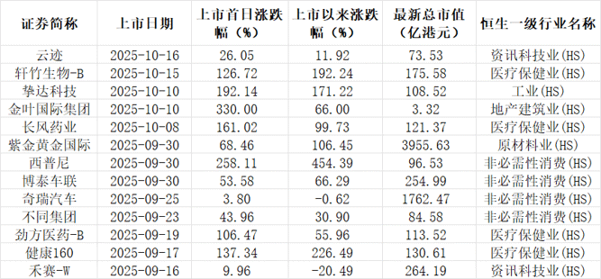 今年港股IPO市场也格外活跃,融资总额位居全球第一。2025年前三季度港股新股市场整体表现强劲,共有68只新股上市,合计实际募资总额约1865亿港元,包括宁德时代、紫金黄金国际、恒瑞医药、三花智控等超大型IPO。与此同时,今年以来,港股新股破发率仅为22%,创九年新低,首日平均上涨38%,远高于去年同期,尤其9月9日以来上市的14只新股,无一破发,其中大行科工更是以7558.4倍的认购倍数创下新纪录。