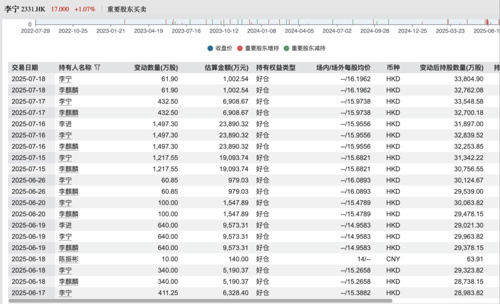 如此高频、大额增持,已创下过去20年的纪录。尤其是李宁公司自2024年以来股价表现不佳,此番增持更受关注。