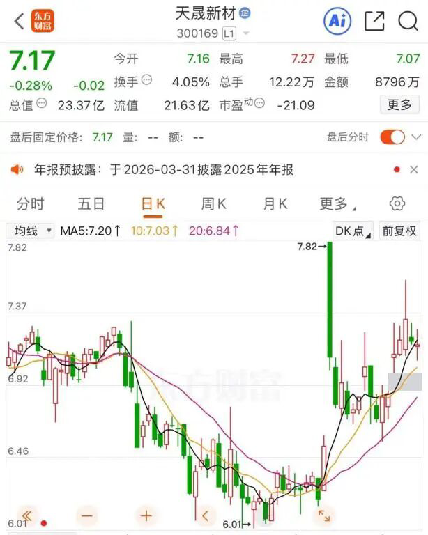 截至2月6日,天晟新材下跌0.28%,报收于7.17元/股,最新市值为23.37亿元。