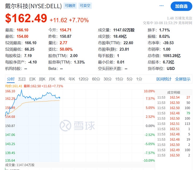 此外,戴尔科技暴涨超7%,消息面上,公司上调其收入及盈利预测,受人工智能基础设施需求强劲推动,目前预计全年收入将增长7%至9%,高于8月预测的3%至4%;经调整每股盈利将增长至少15%,而之前的预期是至少增长8%。