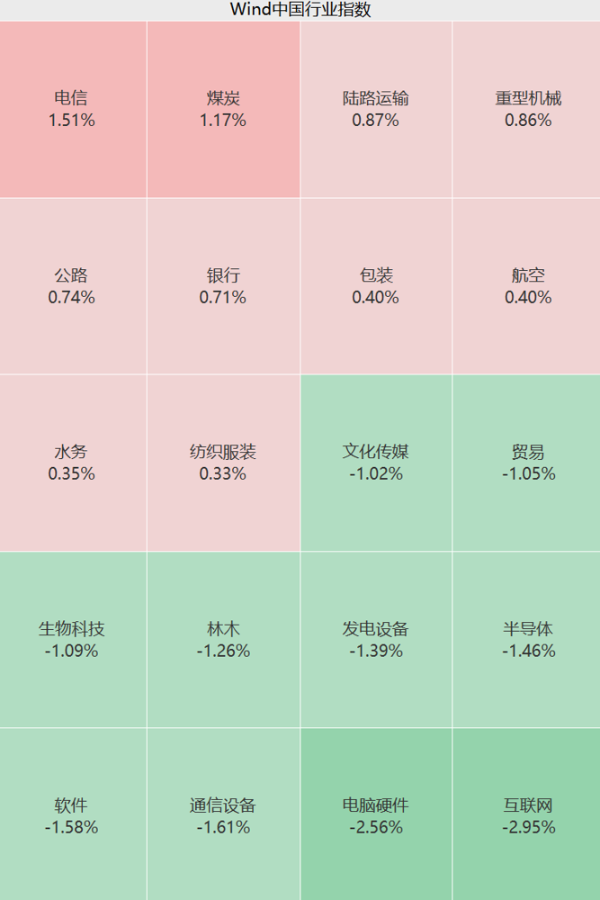 盘面上,上午计算机、通信、电子等板块集体不振,算力方向集体走低;煤炭、银行、电信等板块活跃,锂矿股集体拉升。