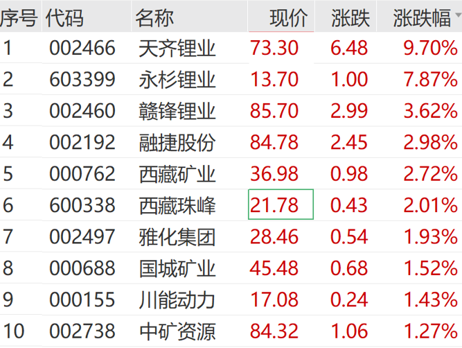 锂矿板块逆市走强