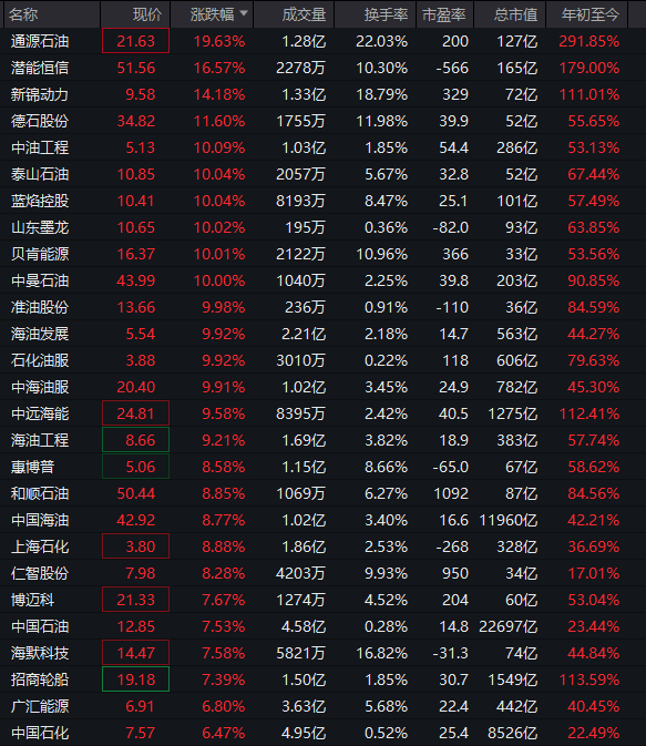 油气板块延续强势