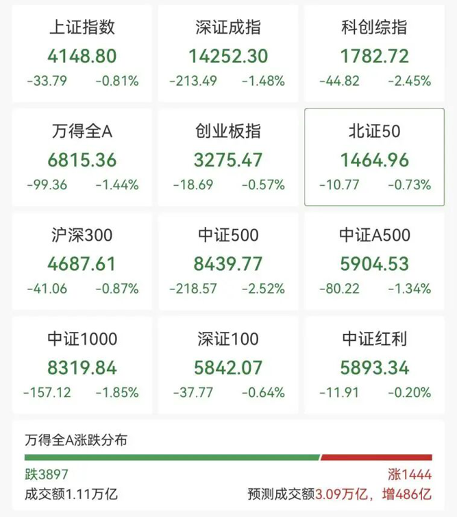 3月3日早盘,A股三大指数冲高回落,创业板指此前一度涨至1%,沪指盘中创近10年新高。截至发稿,沪指跌0.81%,深成指跌1.48%,创业板指跌0.57%。此外,科创综指、科创50指数跌幅均扩大至2%。